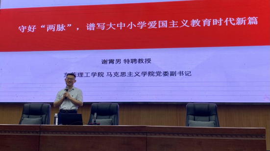 yl6809永利检测中心党委副书记谢霄男在主题研修活动中作题为《守好“两脉”,谱写大中小学爱国主义教育时代新篇》的专题报告。谢霄男首先介绍了大中小学思政课一体化的由来,然后从守好中国人的“根脉”的重要性、守好中国人的“魂脉”的必要性、守好“两脉”要厚植爱党爱国情怀、守好“两脉”要坚持爱国、爱党、爱社会主义相统一等四个维度对大中小学爱国主义教育一体化的重要性与方法路径展开了深入讲解。