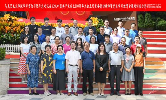 为深入学习贯彻习近平总书记在庆祝中国共产党成立100周年大会上的重要讲话精神,增强为党育人、为国育才的历史使命感,7月12、13日连续两天,马克思主义学院全体教师赴深圳改革开放干部学院开展为期两天的专题培训。