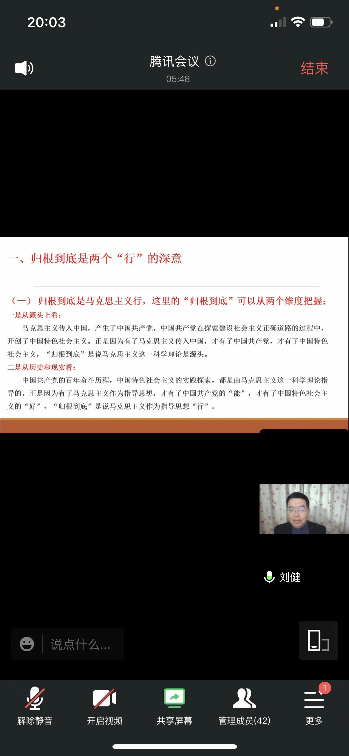 12月1日,马克思主义学院党委书记、执行院长刘健在线上作党的二十大精神第二次专题辅导报告,报告题为《认真学习领会党的二十大精神——归根到底是两个“行”的深意》。马院全体教职员工参加会议。
