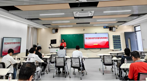 稍后6C302教室,陈小梅会长为求是之声宣讲团开展东江纵队的时代价值与历史传承主题分享会。会上,陈小梅会长以丰富的史料和生动的案例,系统阐释了东江纵队在抗日战争中孤悬敌后仍壮大的坚韧精神与省港大营救的担当情怀。她强调,东江纵队作为华南抗战的重要力量,其忠诚爱国、舍生忘死的英雄事迹是新时代青年坚定理想信念的鲜活教材,激励青年学子从红色历史中汲取奋进力量。王卫平、古浩泉、李思敏分别结合东江纵队后代口述史,分享了革命先辈在艰苦环境中坚持斗争的故事,通过真实细节引发在场师生对红色基因传承的深入思考,进一步深化师生对东纵精神时代价值的理解。