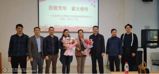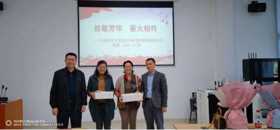 致敬芳华,薪火相传。12月8日上午,马克思主义学院在207会议室举行教职工荣休仪式,向2023年光荣退休的教师表达敬意与感谢。学院领导班子成员,荣休教师周玉华、史琳以及全体教职工参加。仪式由学院分工会主席夏志有主持。